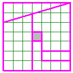tamaño). Cuando los cuatro trozos están colocados de nuevo, forman un cuadrado aparentemente idéntico al