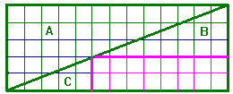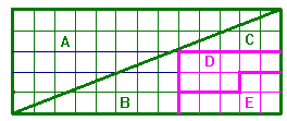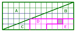 Cortamos el rectángulo grande en 5 trozos. Y observamos un agujero de una unidad a la derecha...
